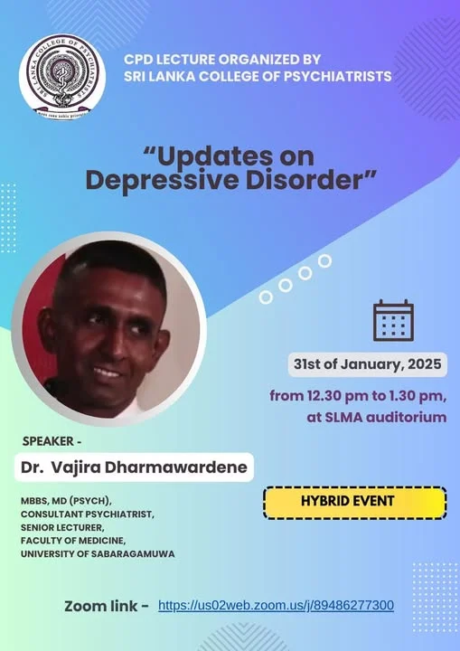 20 Nov EVENTS The next CPD lecture organized by the Sri Lanka College of Psychiatrists Posted by ACC@creativeydigital.com December 16, 2025 0 The next CPD lecture organised by the Sri Lanka College of Psychia... Continue reading